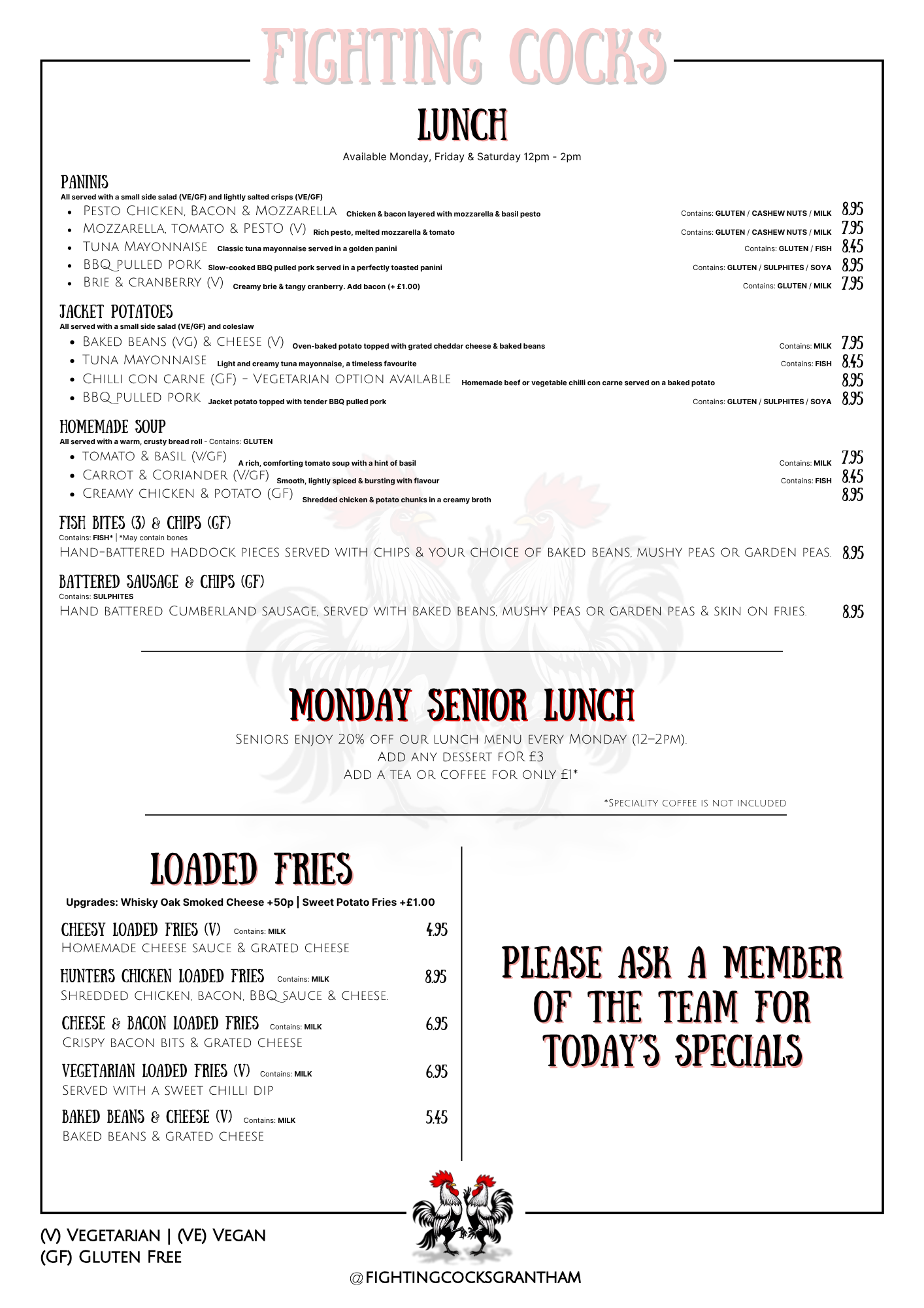 Enjoy great, honest pub food made to be shared. From comforting classics to lighter bites, our menu is all about quality ingredients, generous portions, and dishes you’ll want to come back for, all served in a relaxed, welcoming setting.